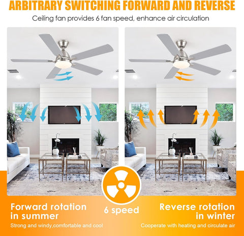 Reversible fan for all seasons, improves air circulation in winter & summer; During summer, this ceiling fan optimizes airflow to enhance comfort; During winter, change the direction to evenly distribute warm air on low speed.