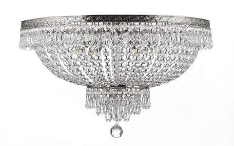 Set of 2-1 French Empire Crystal Chandelier Lighting H50" X W24" - Great for The Dining Room, Foyer, Living Room! and French Empire Crystal Semi Flush Basket Chandelier Lighting H18" X W24" - 1EA CS/870/15 + 1EA FLUSH/CS/870/9 A500-