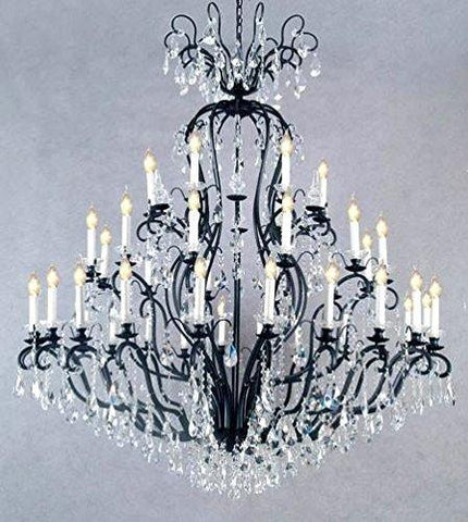 A Great European Tradition. Nothing is quite as elegant as the fine crystal chandeliers that gave sparkle to brilliant evenings at palaces and manor houses across Europe. This beautifully unique version from the Versailles Collection has 100% Crystal that capture and brilliantly reflect the light of the candle bulbs. The frame is all wrought iron, adding the finishing touch to a wonderful fixture. The timeless elegance of this chandelier is sure to lend a special atmosphere anywhere its placed! Specifications: Size: W 60" H 72" Lights: 41 Lights Assembly Required.