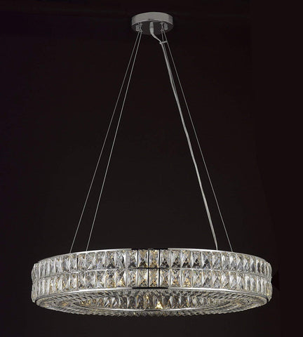 Crystal Nimbus Ring Chandelier Chandeliers Modern/Contemporary Lighting Pendant 40" Wide - Good for Dining Room, Foyer, Entryway, Family Room and More! This beautiful lighting fixture features 100% Crystals which capture and reflect the light from its 14 bulbs. Truly a stunning chandelier, this fixture is sure to lend a special atmosphere anywhere it is placed. Size: H 4.5" W 40" / Comes with a 10 Foot Adjustable Cable Assembly Required.