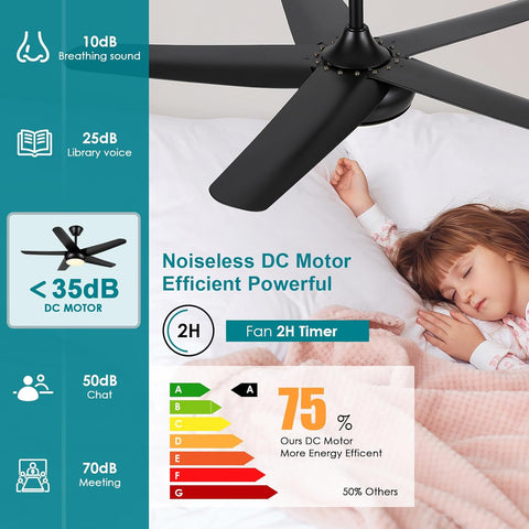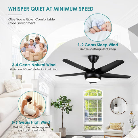 This low profile ceiling fan equips with a reversible pure copper DC motor. It has two rotation modes, forward and reverse, plus a 6-speed adjustable wind speed, making it practical for use in all seasons.