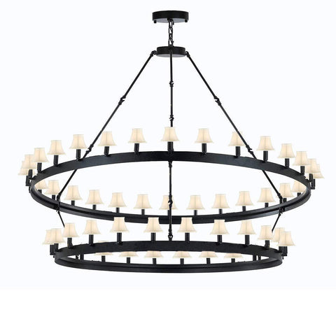 Set of 2 - Wrought Iron Vintage Barn Metal Castile Two Tier Chandelier Industrial Loft Rustic Lighting W 63" H 60" w/White Shades Great for The Living Room, Dining Room, Foyer and Entryway, Family Room, and More - 2EA G7-WHITESHADES/3428/54